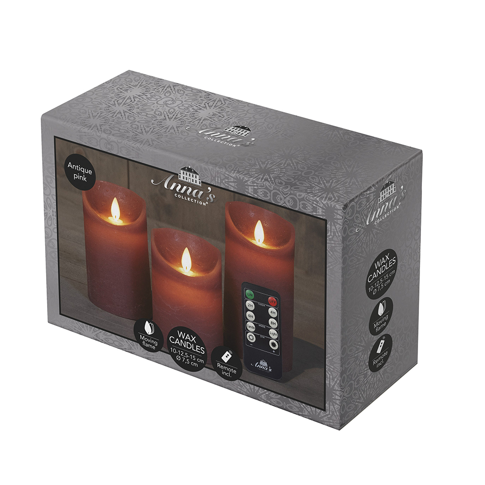 – Afmetingen van de kaarsen: 10 cm hoog, 12,5 cm hoog en 15 cm hoog (allemaal 7,5cm doorsnede)