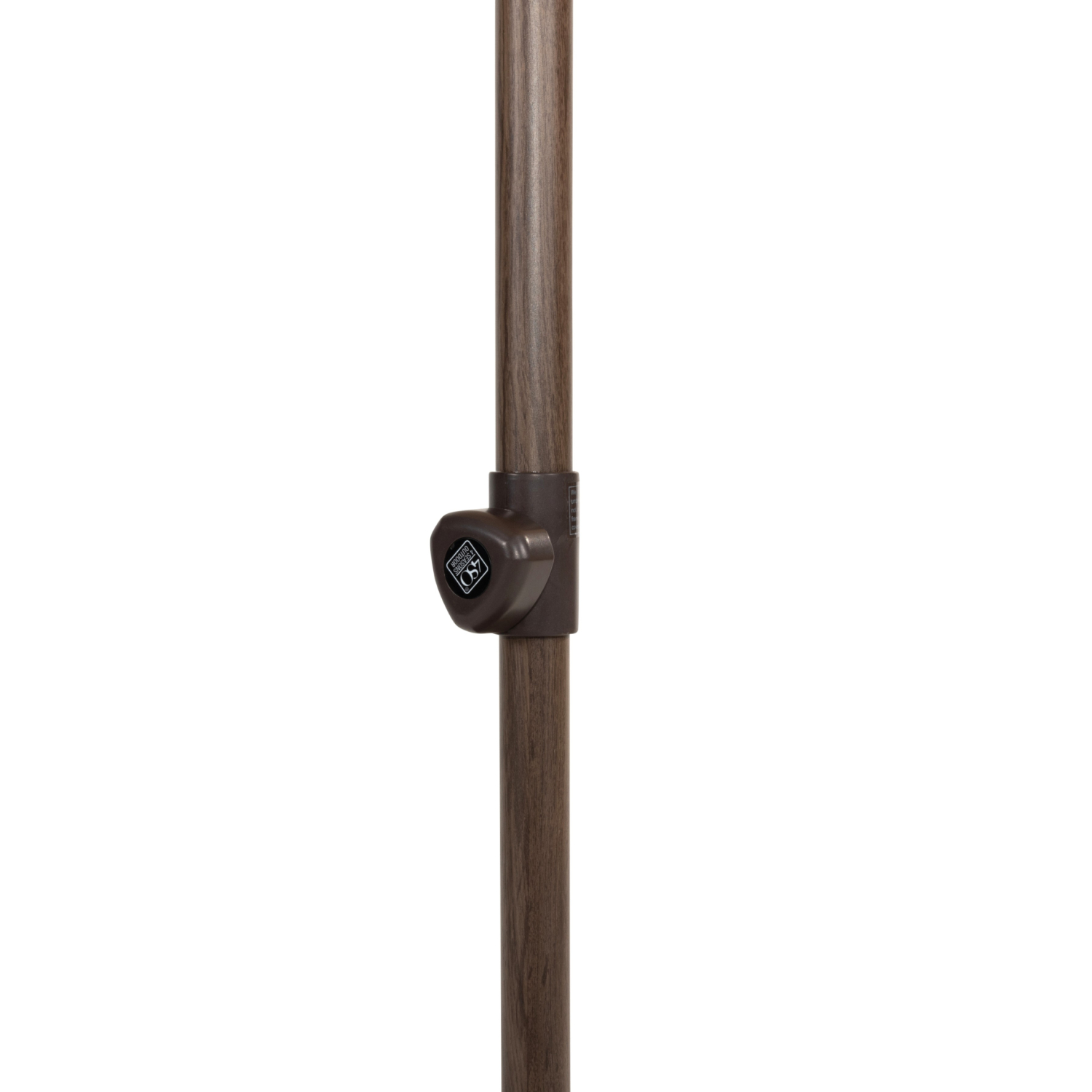 Het lichtgewicht aluminium frame bestaat uit 2 delen (onderstok apart). De afwerking is uniek in zijn soort, een erg realistische donkerbruine (wenge) houtlook is aangebracht op het aluminium. Dit geeft deze parasol een warme en natuurlijke uitstraling en is hierdoor ook echt een blikvanger op je terras.
