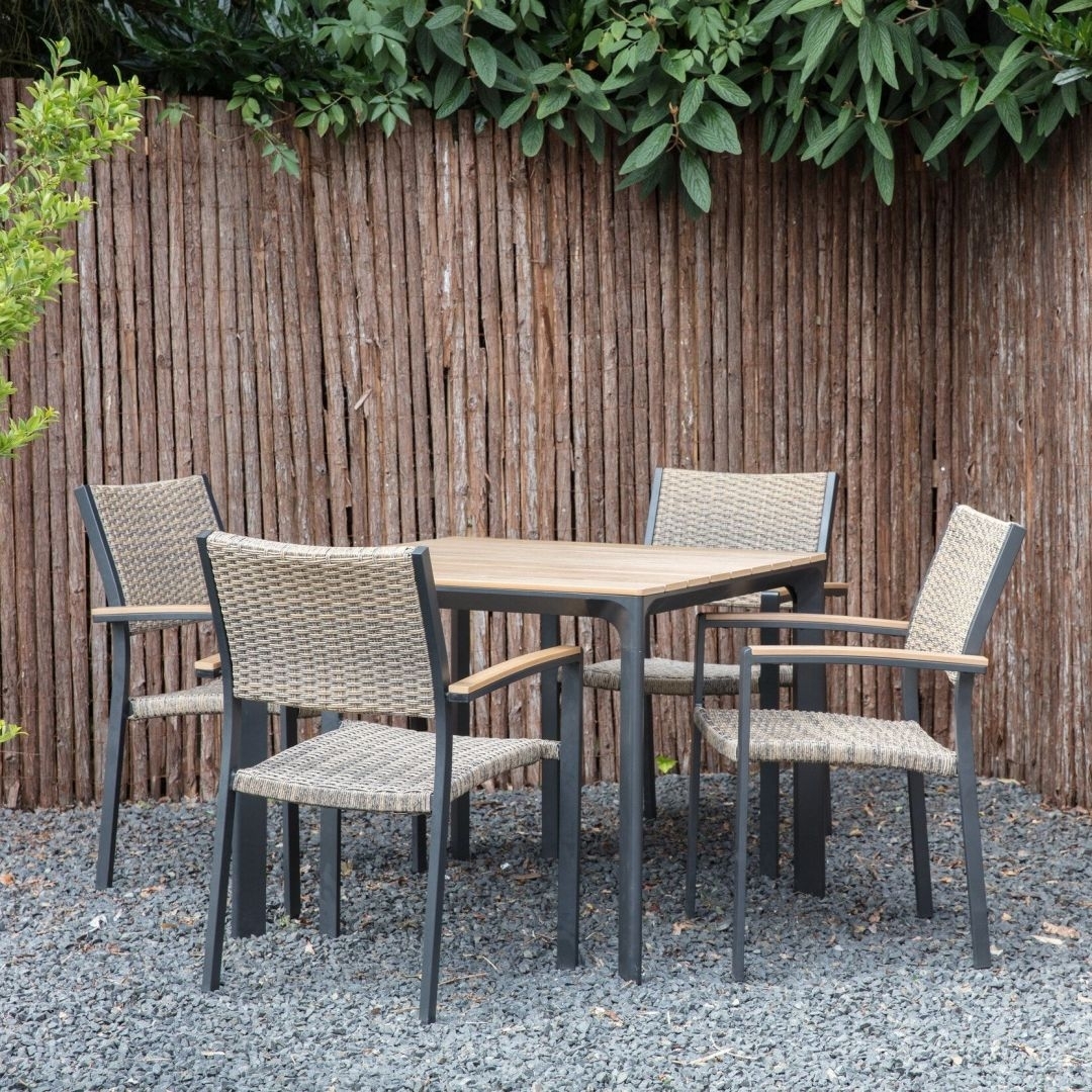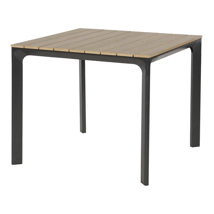 De Arezzo tuintafel is opgebouwd uit een aluminium frame en is afgewerkt met een prachtig polywood blad met teaklook. Door de combinatie van de materialen is de tafel volledig weersbestendig.
