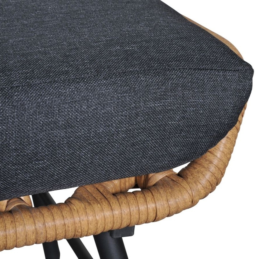 De hocker heeft een aluminium frame, afgewerkt met weerbestendig vlechtwerk in de kleur Bamboo.