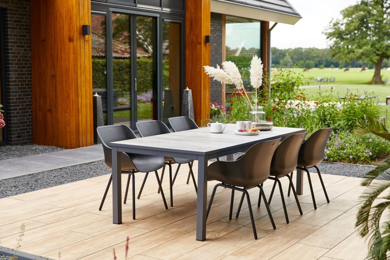 Wat de Comino tafel echt bijzonder maakt, is het hoogwaardige keramische lattenblad. Dit zorgt voor een moderne en luxe uitstraling, terwijl het tegelijkertijd extreem duurzaam en onderhoudsvriendelijk is. Het keramiek is bestand tegen krassen, vlekken en extreme weersomstandigheden, waardoor je jarenlang kunt genieten van een tafel die zijn schoonheid behoudt.