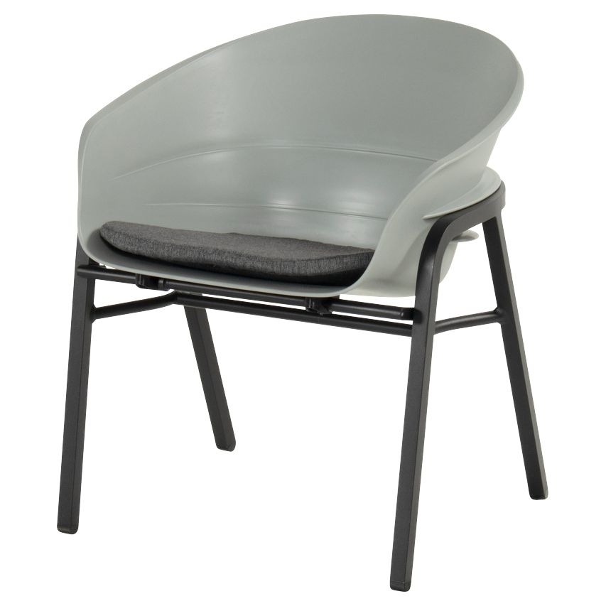 De stoel heeft een zwart onderstel, is te verkrijgen in de kleuren royal white, soft taupe en concrete grey en wordt standaard geleverd met het Havana dark grey Tubb zitkussen.