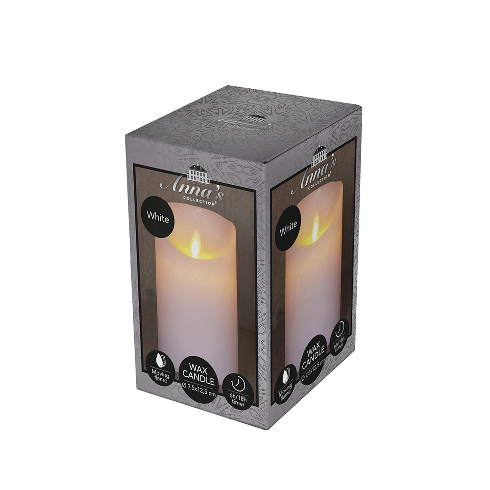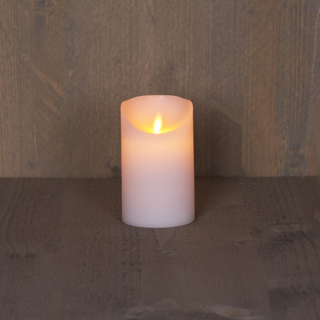 De rustieke LED kaars lijkt aan de buitenkant op een gewone kaars, maar binnenin zit een vernuftig LED licht dat dezelfde betoverende vlam laat zien als een waskaars.