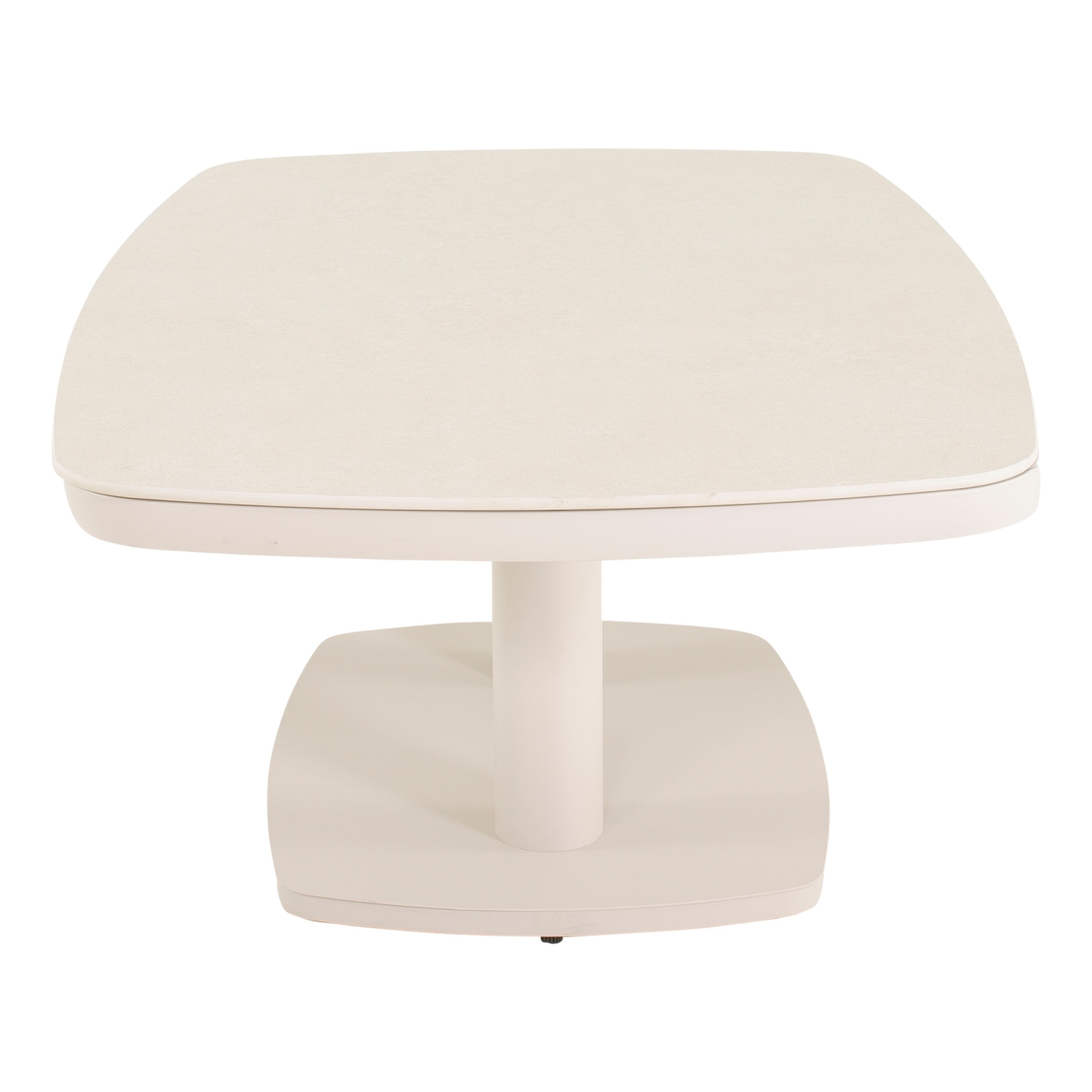 Het tafelblad is gemaakt van keramiek. De afmetingen van de in hoogte verstelbare lounge tuin tafel zijn 135 x 83 cm. De hoogte is in te stellen van 50 cm naar 73,5 cm.
