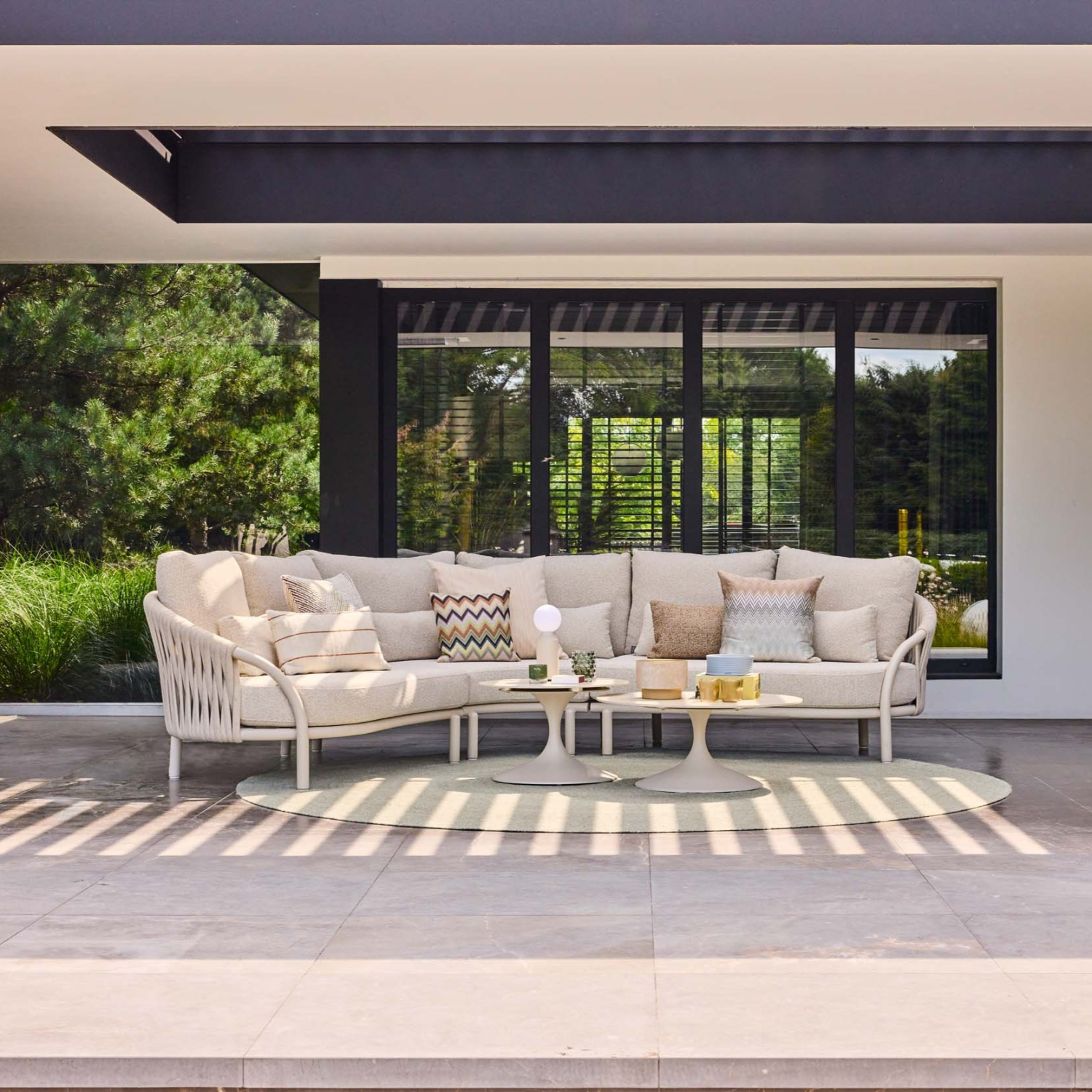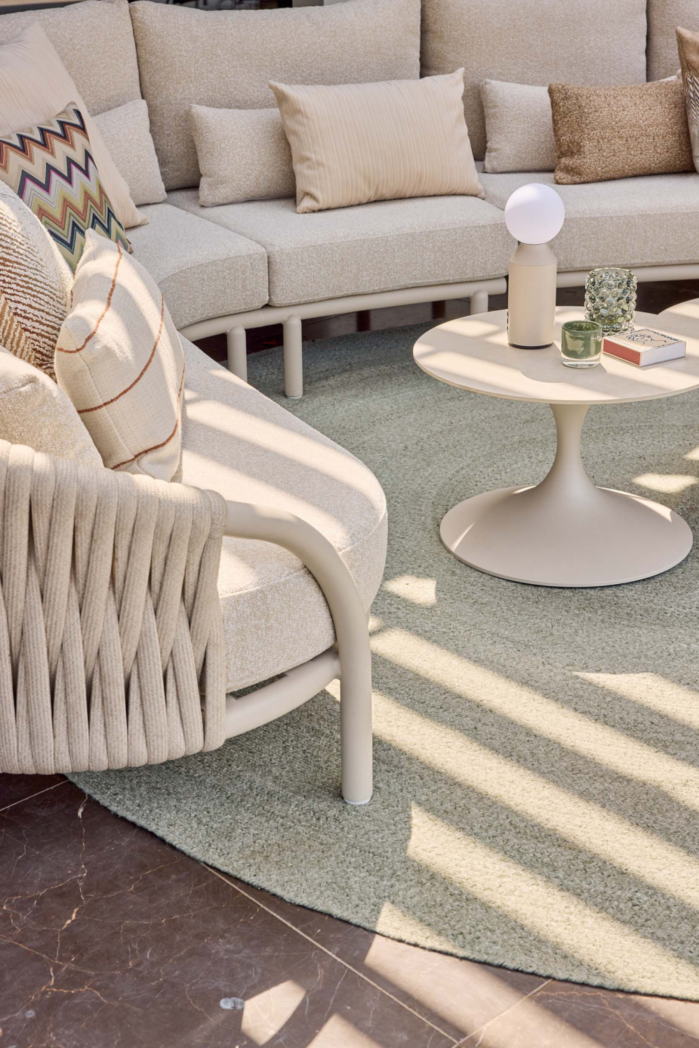 – 1x rond middendeel – Camel Sand aluminium frame | Misty rope | Beachy bouclé all weather kussens
